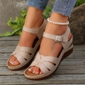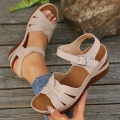 Босоніжки FreeStep на широкій танкетці - бежеві